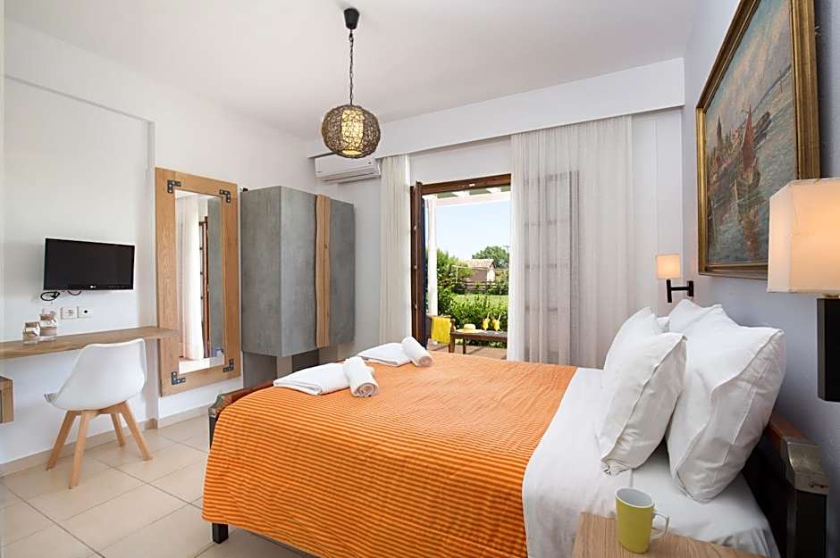 Air-conditioned studio with a satellite TV, mini oven and electric kettle. It opens out to a balcony or terrace with garden, sea and pool views.